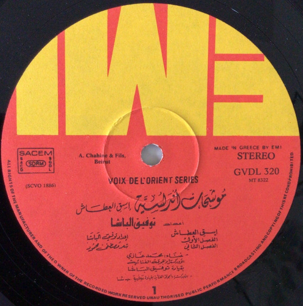 Phonographic Copyright (p) A. Chahine & Fils