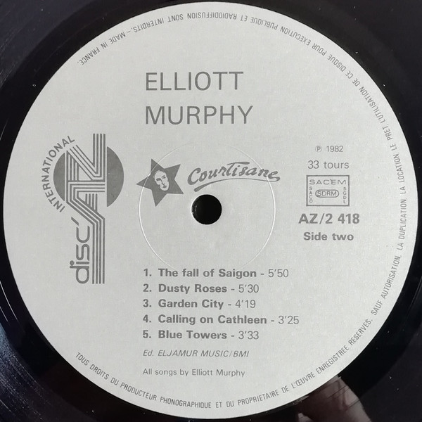Back cover: All songs by Elliott Murphy