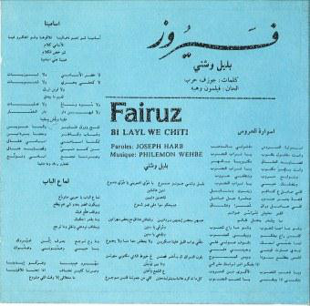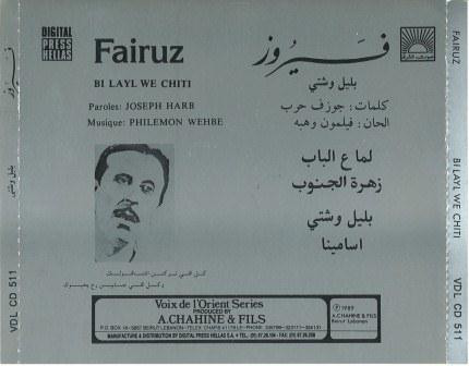 Fairuz = Fairuz – بليل وشتي = Bi Layl We Chiti (CD, Album) (Mint (M))