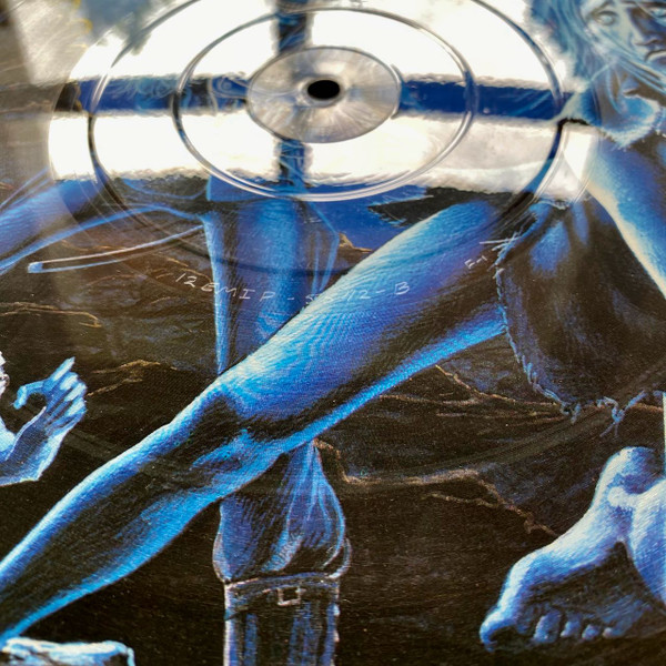 In contrast to the black vinyl edition, that has a detail of the front cover as back, this picture disc has a unique drawing instead.