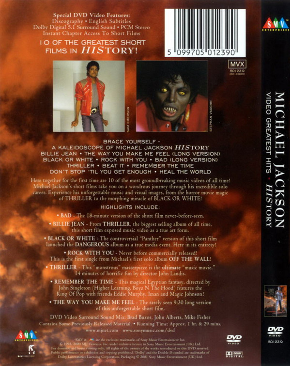 Here together for the first time are 10 of the most groundbreaking music videos of all time! Michael Jackson’s short films take you on a wondrous journey through his incredible solo career. Experience his unforgettable music and visual images, from the horror movie magic of THRILLER to the morphing miracle of BLACK OR WHITE!
