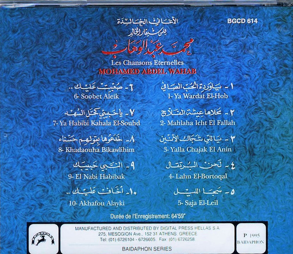 Mohamed Abdel Wahab = Mohamed Abdel Wahab – الاغاني الخالدة = Les Chansons Eternelles (CD, Album, Comp) (Mint (M))