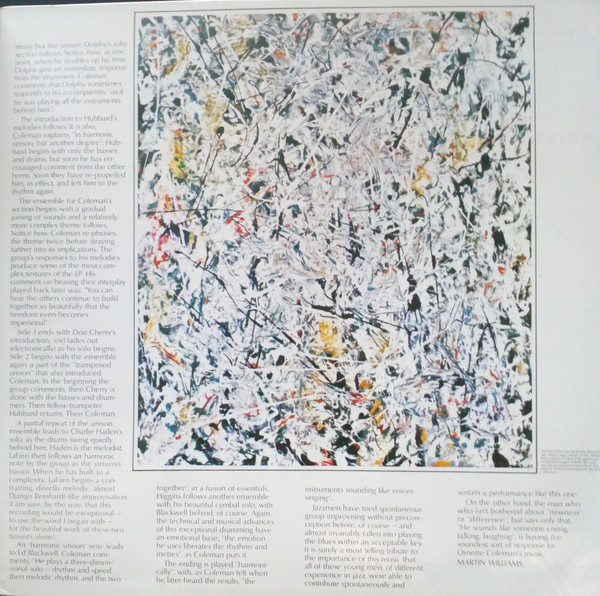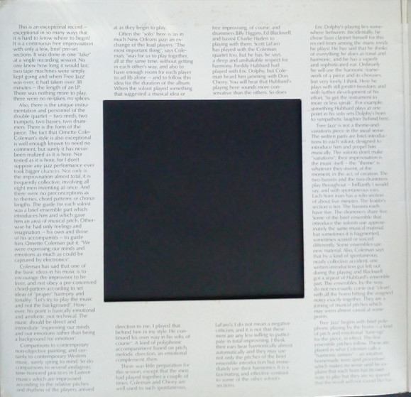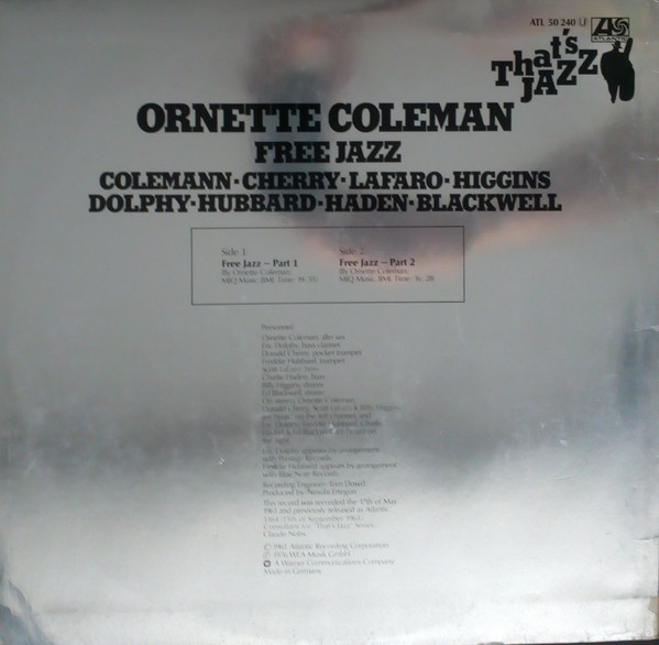 Scott LaFaro: Bass; Billy Higgins: Drums; Ornette Coleman: Alto Saxophone; Donald Cherry: Pocket Trumpet
