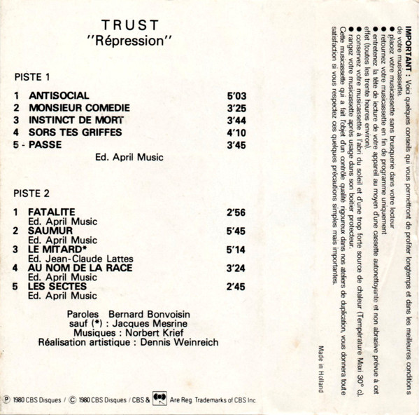 Phonographic Copyright (p) CBS Disques