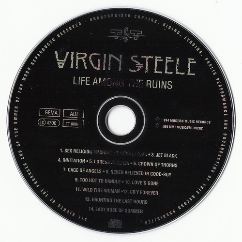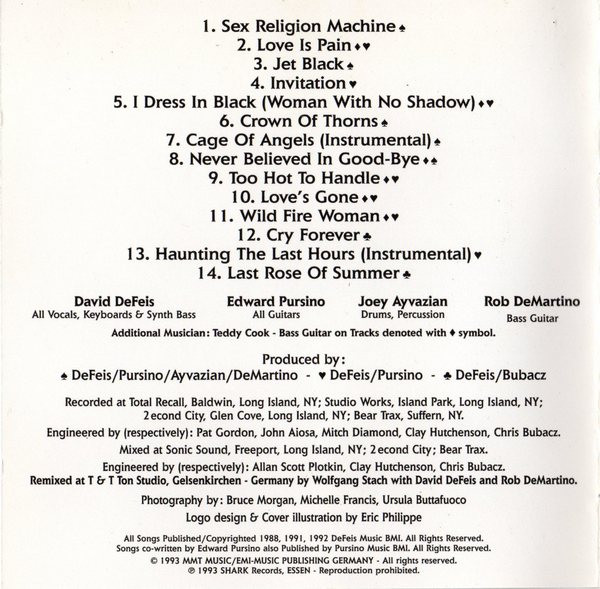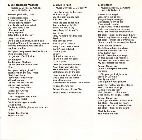 8 page booklet has all lyrics, band and individual photos, thanks and credits.