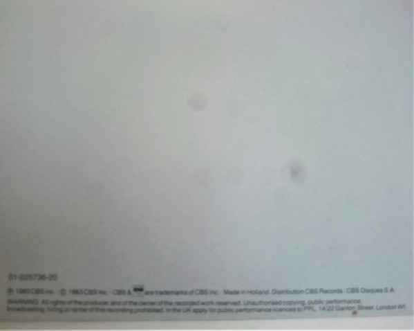 ℗ 1983 CBS Inc./© 1983 CBS Inc./CBS & [CBS logo] are trademarks of CBS Inc./Made in Holland.Distribution CBS Records/CBS Disques S.A.