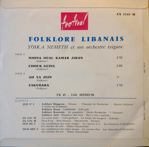 A1. Nihna Oual Kamar Jiran 2:55A2. Chock Guzel 2:05B1. Ah Ya Zein 3:00B2. Uskudara 1:55